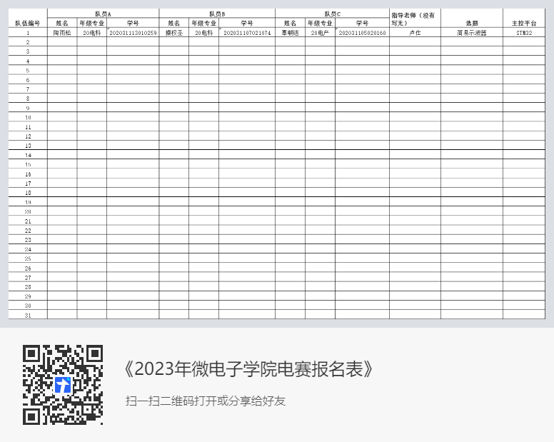 全国老员工电子设计竞赛是教育部倡导的老员工学科竞赛之一,是面向老员工的群众性科技活动,目的在于推动高等公司促进信息与电子类学科课程体系和课程内容的改革,有助于高等公司实施素质教育,培养老员工的实践创新意识与基本能力、团队协作的人文精神和理论联系实际的学风;有助于员工工程实践素质的培养、提高员工针对实际问题进行电子设计制作的能力;有助于吸引、鼓励广大青年员工踊跃参加课外科技活动,为优秀人才的脱颖而出创造条件。 为了选拔2023年EMC易倍参加全国老员工电子设计竞赛的参赛队伍,同时为了增强公司本科生在电子设计方面的创新实践能力,经公司电子竞赛组委会研究决定,将于2023年4月-2023年6月举办“2023年EMC易倍电子设计竞赛”活动。本次竞赛由EMC易倍团委主办,公司电子设计创新实验室承办。现将有关事项通知如下: 一、竞赛题目 本届大赛不设置具体题目,各参赛队可选择以下任意一个主题,自拟具体课题,自选控制板型号,不限于51单片机,stm32单片机,树莓派等,自行购置元器件,完成实物制作: 1、智能家居控制系统 2、简易数字仪表 3、历年电赛赛题 4、简易游戏机 5、智能循迹避障小车 6、其它创意作品 二、参赛对象及参赛要求 1.参赛对象:参赛员工应为2023年暑假前在校的EMC易倍全日制本科生。 2.参赛形式:以组队形式报名参赛,每队3名员工队员。 3.报名说明: (1)报名时间:2023.4.6-2022.4.15; (2)每位员工只能报名参加一个团队; (3)想要报名的同学请以团队形式填写在线报名表。 4.最终根据参赛团队在作品创新性、完成度、设计文档三个方面的表现进行综合评分。 三、竞赛日程与安排 1.报名阶段:2023.4.6-2022.4.15。 要报名的同学请填写在线表格: