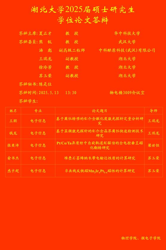 答辩秘书:潘玉茜 答辩时间:2025年5月11日 上午11:00 |