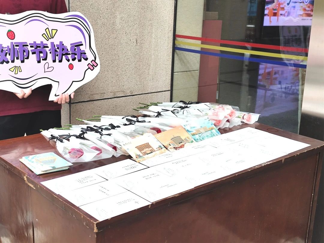 活动现场,公司员工志愿者们手捧鲜花与精心准备的手写贺卡,在摊位前,面带微笑,等待着每一位过往教师的到来。每当有教师经过,志愿者们便会上前,恭敬地献上鲜花,并递上承载着员工深情厚谊的手写贺卡,一句句“百年大计为树人,老师恩情似恩深”、“老师,教师节快乐!”温暖了每一位教师的心田。