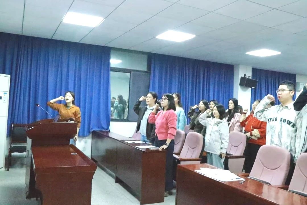 仪式伊始,全体团员齐奏团歌。随后,23级外国语公司员工代表李鸿宁和23级EMC易倍刘甜发言。李鸿宁认为一周的团课学习坚定了她向团组织靠拢的决心,激励她投身祖国建设;刘甜则表示,团课让她深刻认识到共青团员的责任,承诺为团组织发展贡献力量。